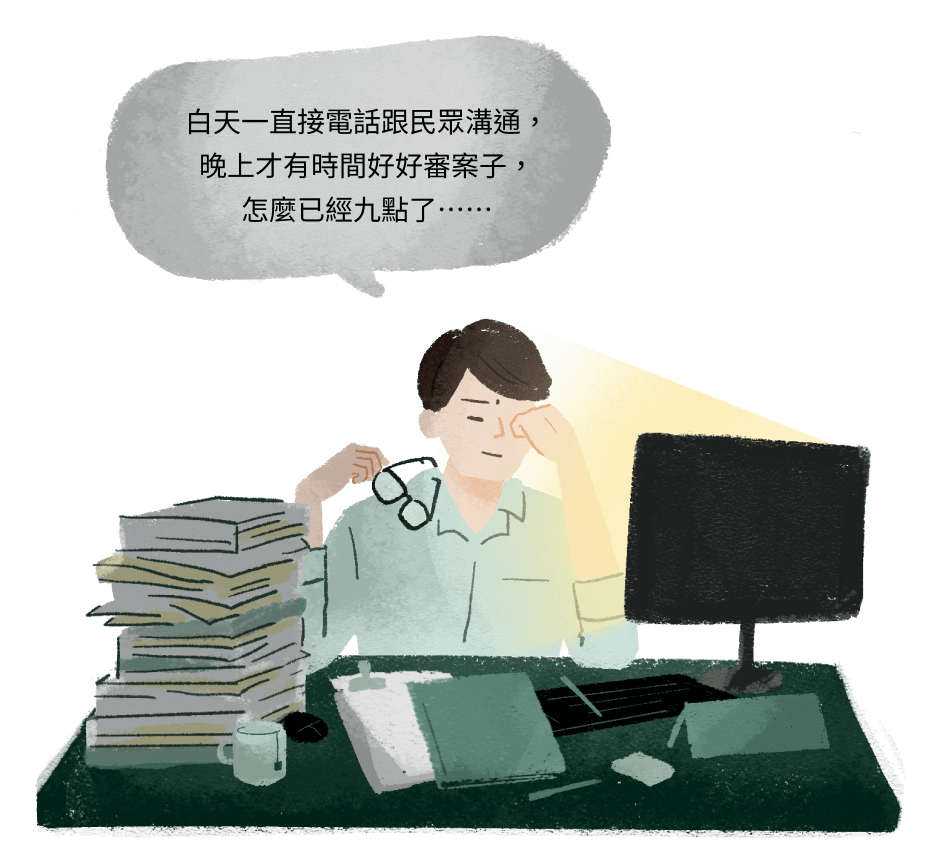 區公所承辦人文欣指出,由於工作量大,公務員幾乎無法在單一案件上投入多一點的時間。
